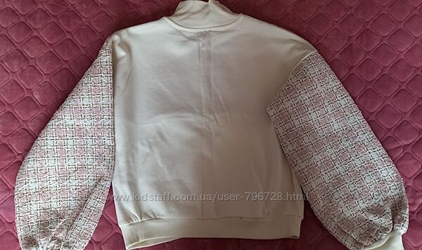 Продам новый костюм с сайта Некст. Без бирок, отрезали, но не носили, дочь слишком худенькая для него.Цвет молочный с бело-розовыми вставками с люрексом. Модный. Рукава фонариками, кофта укороченная. С внутренней белой стороны баечка. С цветной изнанки баечки нет, сама ткань достаточно плотная. Спереди карман-кенгурушка. Подойдет на плотненькую девочку ростом 152-158 см.