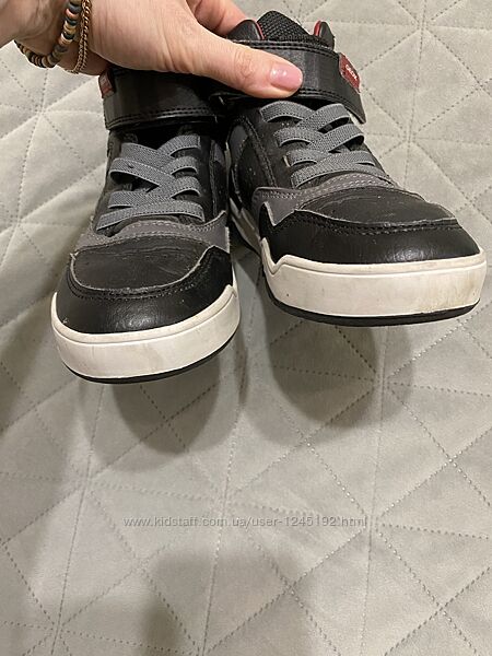 Черевики Geox, розмір 33, устілка 21,5, сезон демі або тепла зима, стан чудовий, липучки все ціле, є нюанс на червоній бірочці, на фото показала Опис Дитячі черевики Geox J Perth B. A (J167RA-OFEFU-С0260) чорного кольору. Модель зі зручною посадкою, на липучці, з міцною гумовою підошвою. Особливості: Bepx з екошкіриЗастібка-липучкаЛоготип бренду GeoxЗапатентована дихаюча підошва RESPIRA™ захищає від вологиМіцна підошва з гуми з хорошим зчепленням доставка тільки новою поштою!