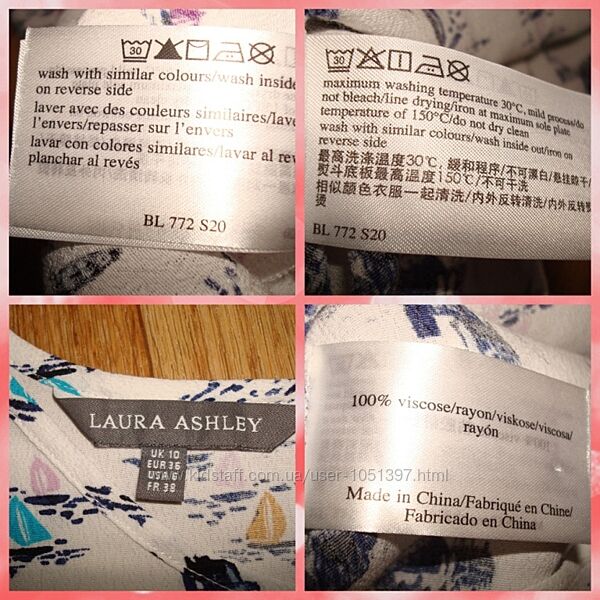 laura ashley Красивая женская блузка вискоза рукав 3/4 волан 46