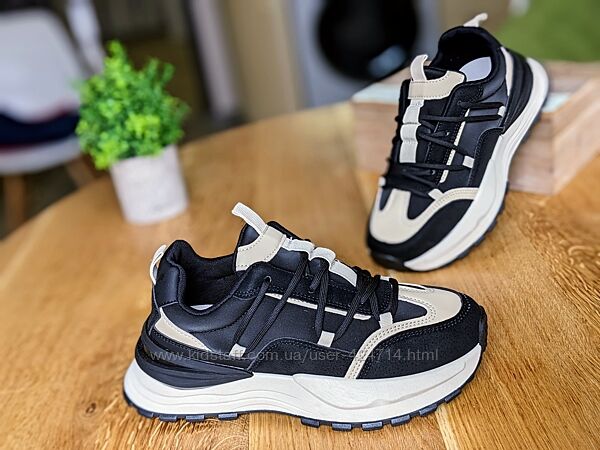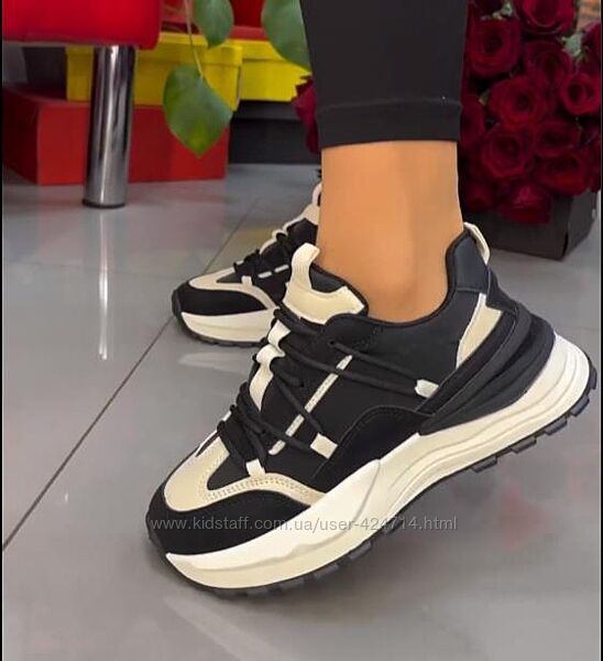 Стільні жіночі кросівки на кожен день . Колір взуття чорний +бежеві вставки . Дуже цікаво виглядають на назі , не громізкі. Матеріали яксні.Не встиг зробити фото як жінка забронювала пару собі. )