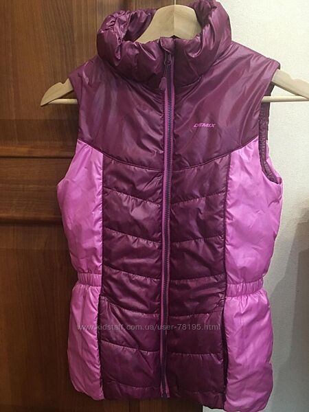 Жилетка Demix, рост 146 см.В идеале-состояние Новой.Замеры-длина 57 см,ширина между подмышками-42 см.