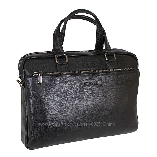 Зручний шкіряний портфель DRIVER by DE ESSE легко помістить невеликий ноутбук або планшет, документи формату А4. Натуральна шкіра найвищої якості приємна на дотик і довговічна. У комплекті є довгий текстильний ремінь (125 см) та 2 зручні ручки. Одне велике відділення на блискавці. Усередині велика кишеня на блискавці, 2 кишені для мобільного телефону або павербанку та відділення для ноутбука на липучці (13 дюймів, розмір до 32*20 см), якщо ноутбук більший – його можна розмістити у загальному відділенні (розміром до 36*24). Зовні з обох боків дві великі кишені на блискавці. Цей портфель вмістить всі необхідні речі сучасного ділового чоловіка, придивіться до цього варіанту. Розмір 27*37*6 см. Виробництво - будинок моди De Esse, Франція. Продається в подарунковій коробці в еко-стилі.