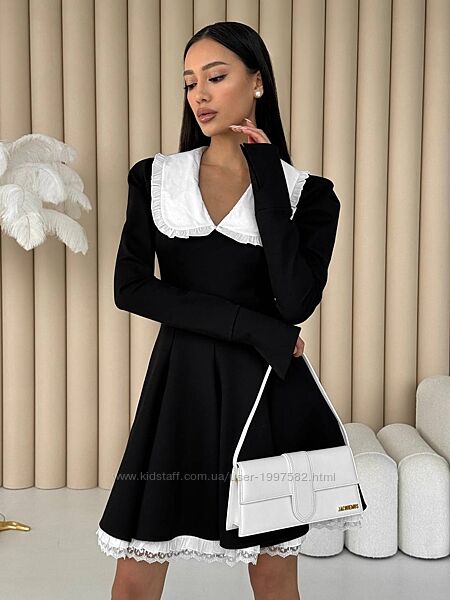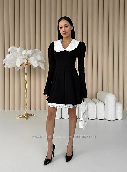 Подробное описание: Вечірня сукня міді з коміром з довгим рукавом з мереживом чорна пишна