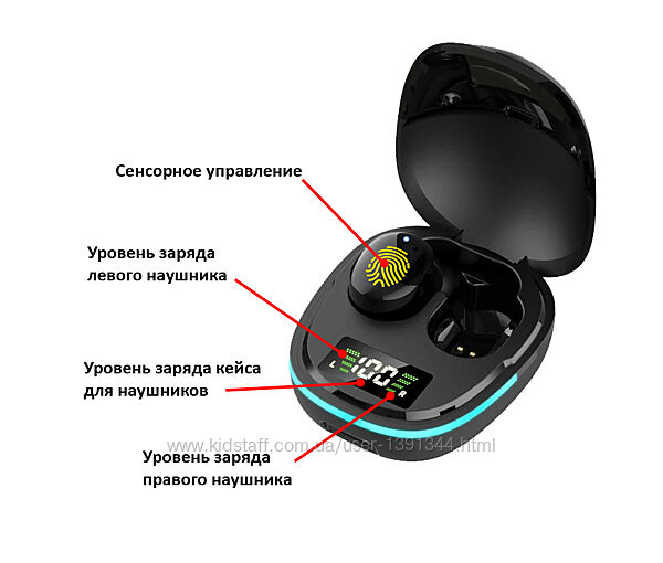 Цифровой Led дисплей с индикатором заряда кейса и наушников.