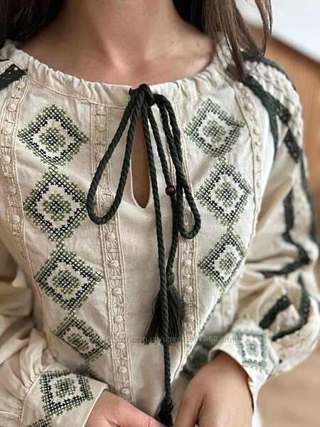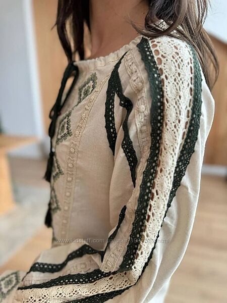 Подробное описание: Жіноча вишиванка сучасна мережка блуза вишита сорочка бежева з мереживом