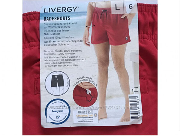 Шорты пляжные с внутренними плавками, Livergy. Германия. 6/L