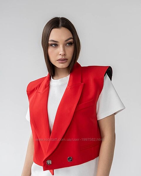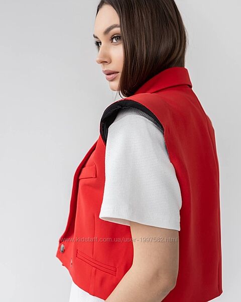 Подробное описание: Жіночий жилет класичний бежевий червоний чорний жилетка