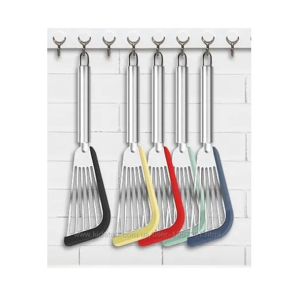 Антипригарна силіконова лопатка прорізна з нержавіючої сталі та силіконовим краємУльтратонкий гнучкий дизайн - лопатка виготовлена з високоякісної нержавіючої сталі 430 і харчового силікону. Ультратонке лезо з м’яким гнучким краєм, термостійким і безпечним у використанні, не подряпає посуд.