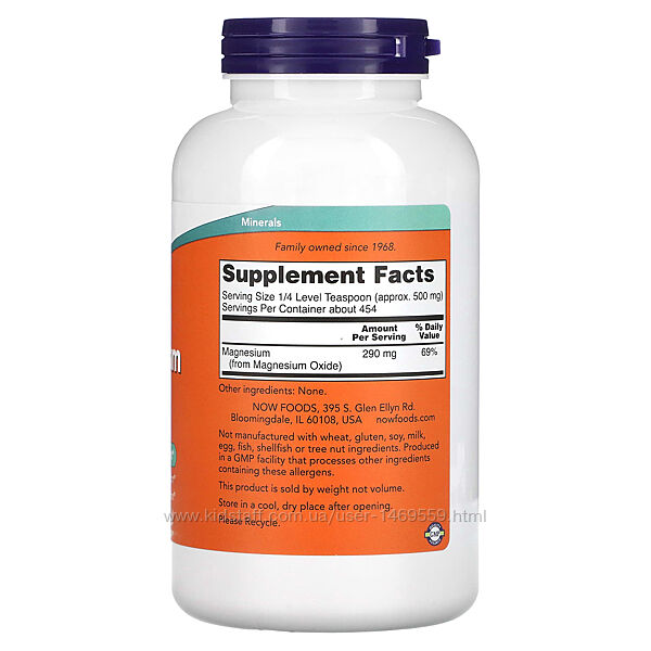 Подробное описание: NOW Foods чистий порошок оксиду магнію 227 г вітамін магне нервової системи
