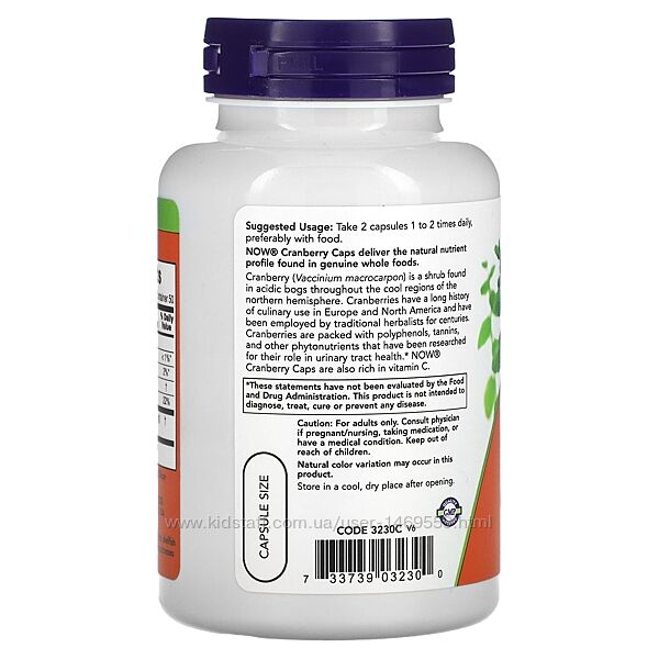 Подробное описание: NOW Foods капсули з журавлиною 100 рослинних капсул Cranberry сечовий міхур