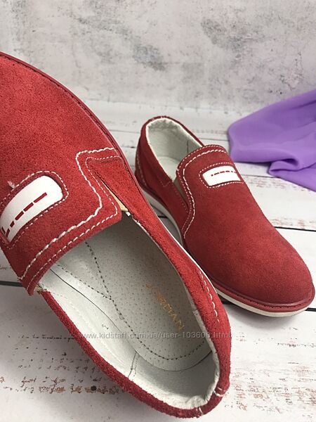 Нарядні, стильні та комфортні туфлі мокасини Jordan для хлопчиківВ якості матеріалу використався нубук, плюс якого в тому, що він добре відштовхує вологу та відмінно носиться, це та сама шкіра, тільки з дрібним ворсом і має ті ж самі переваги, що й гладка шкіра, але на думку модних дизайнерів, вироби з нубуку виглядають більш круто
