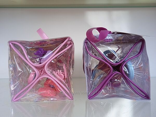 Склад: 1 косметичка - органайзер, 1 гребінець, 1 резинка с прикрасами кубиками, 6 резинок м для волосся, 6 заколок крабиків для волосся