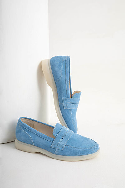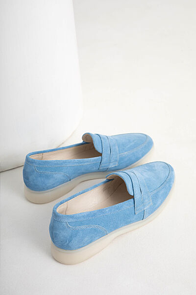 Подробное описание: Туфли лоферы замшевые голубые женские v7-1056-06s