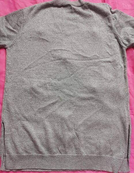 Підлітковий светер в ідеальному стані.Колір сірий з люрексом, приємний до тіла. Ог 43, рукав від плеча 57, довжина по спинкі 61, по бокам невеликі розрізи.