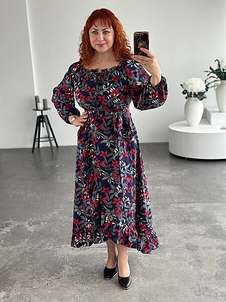 Нова ціна р.52 до 66р. Сукня софт у вечірньому стилі