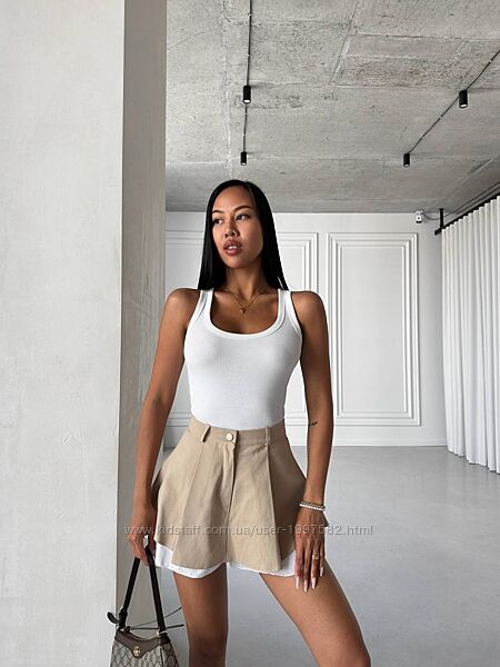Подробное описание: Спідниця-шорти міні з високою талією літня чорна бежева сіра