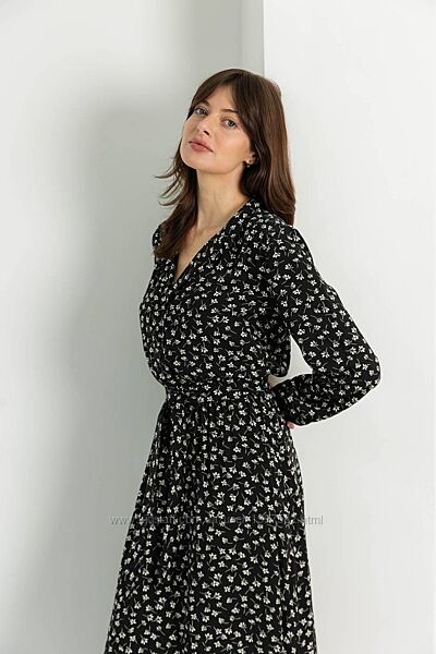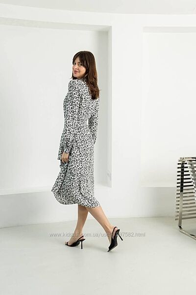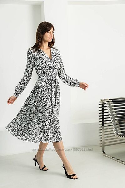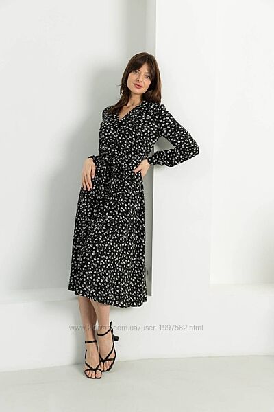 Подробное описание: Жіноча сукня штапель міді з довгим рукавом з поясом з гудзиками класична