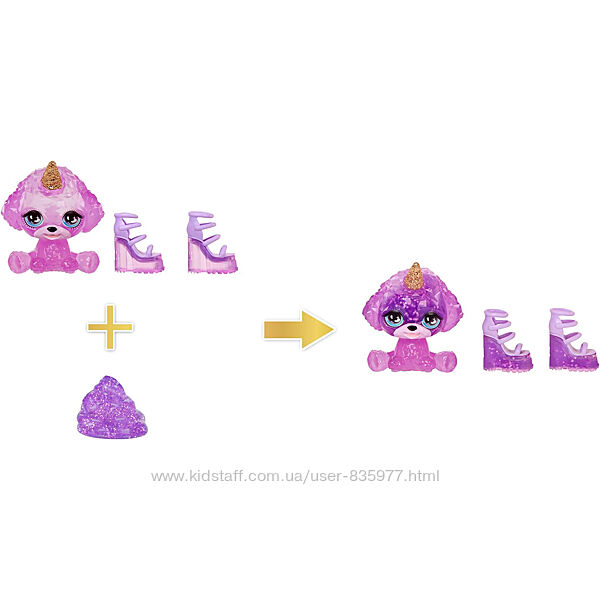 Чарівний Вихованець: Вперше лялька Рейнбоу Хай Вайолет приходить із чарівним чарівним вихованцем, пуделем із рогом. Щоб змінити колір чарівного собаки, ви можете наповнити голову слаймом, зробленим своїми руками.