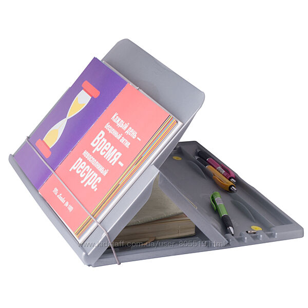 5 найкомфортніших для постави та зору позицій нахилу передньої панелі-підставки: передня панель органайзера дає змогу зафіксувати документи, книги або ґаджети в одній із 5 позицій нахилу, визнаних найвідповіднішими для формування і збереження здорової постави, а також для збереження гарного зору під час роботи з документами та з цифровими ґаджетамиКомфортна універсальна панель-підставка — розмір і форма передньої панелі-підставки органайзера дає змогу легко розмістити та зафіксувати: книги та робочі зошити найпоширеніших форматів, телефон, планшет і ноутбук найпоширеніших діагоналей, а також нотні зошити й альбоми, альбоми та скетчбуки для малювання (до А4 формату)Борд для записів — у зібраному вигляді зворотний бік слугує чудовою основою для здійснення записів у висячому положенні — підходить для будь-яких форматів до А4Місткі та зручні відділення для книг, письмового приладдя і дрібниць зі зворотного боку передньої панеліЗручність транспортування — легко та зручно збирається, легко розміщується в робочій сумці, що дає змогу носити Porta Book із собою і використовувати в будь-якому необхідному місціБезпека — всі кути органайзера заокруглені та безпечні для використання і транспортуванняВисока зносостійкість — міцний матеріал органайзера витримує навантаження вагою до 12 кг, а його конструктив — до 10 000 розкриттів на 360 градусівЛегкість і зручність транспортування — маленька вага та компактний у складеному стані розмір органайзера дає змогу розмістити його в робочій сумці та без проблем переносити його всередині дому, офісу, а також носити із собою на основні навчальні та додаткові заняття, на роботу, у відрядження тощо.