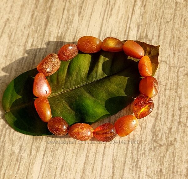 Бурштиновий браслет до того ж володіє особливими лікувальними властивостями. Гладенькі сонячні намистини не тільки підкреслюють красу руки, а й прекрасно масажують біологічно активні точки на зап´ясті, покращуючи при цьому загальне самопочуття.