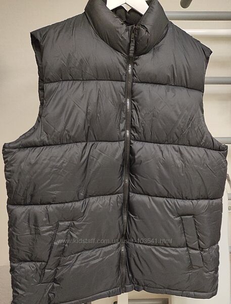 Продам новий жилет OLD NAVY, розмір XXL TALL. Замовляла з американського оф. сайту. Колір чорний. На мій погляд трошки маломірить, бо на мого сина виявився замалим. Основна тканина досить тонка. Сам жилет має об´єм, трохи дутий. Внутрішня частина на звичайній підкладці з тканини. Є дві кишені, без блискавки, внутрішня частина кишень фліс. Комір-стійка, з внутрішнього боку на флісі. Жилет не подовжений.
