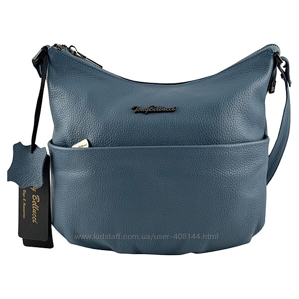 Сумка жіноча шкіряна Tony Bellucci 0072-215 блакитна ✔️ Матеріал: натуральна теляча шкіра флотар-зерниста.
