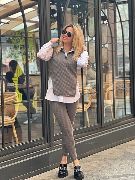Подробное описание: СМ, МЛ Костюм трійка лосини, сорочка, жилет стьобаний трикотаж, котон