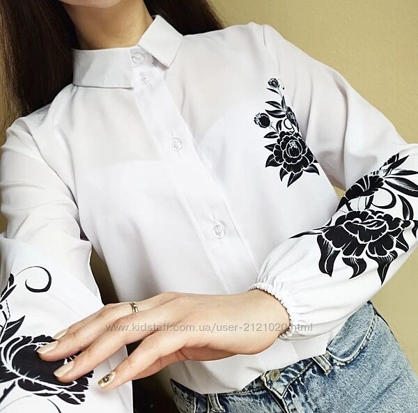 Стильна, патріотична блуза жіноча.Матеріал: сорочкова тканина