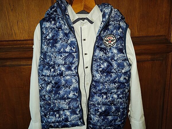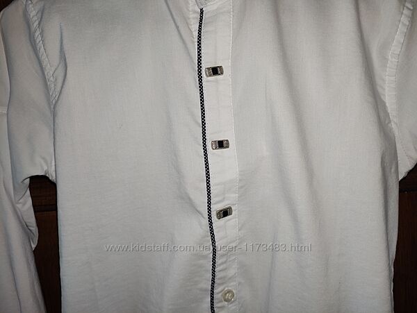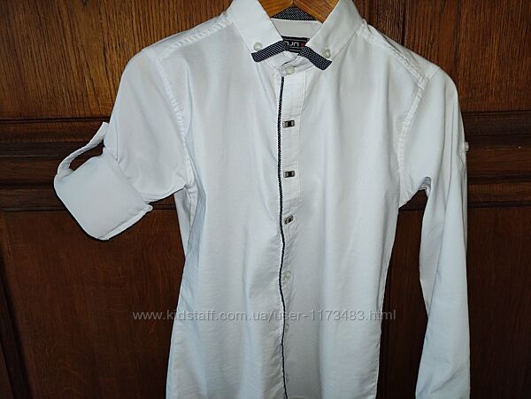 Продам в идеальном состоянии рубашку.Дефектов нет,одели один раз на праздник в школу. Рукав можно подкатывать,есть внутри застёжка на рукаве. Манжеты также можно подключить,и будут синие крутые манжеты. В наличии есть под рубашку трикотажный пиджак.