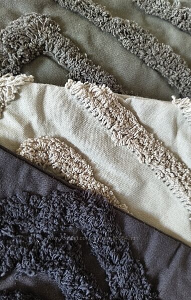 Подушки виготовлені з приємного на дотик матеріалу, що імітує натуральний льон - 100% бавовна Ззаду вшита невидима блискавка. Рекомендовано ручне прання. Колір бежевий + хакі + антрацит Виготовлено в Індії