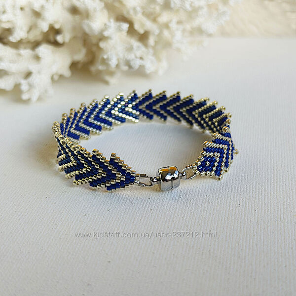 Эффектный браслет, изготовленный из ювелирного японского бисера.Имеет магнитную застежку из нержавеющей стали.