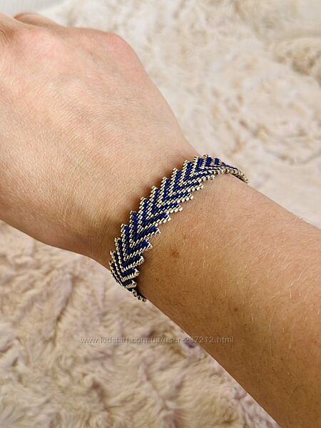 Подробное описание: Серебристо-синий браслет из бисера, бисерный браслет