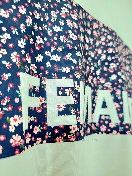 Колір білий з квітковим принтом, напис Female