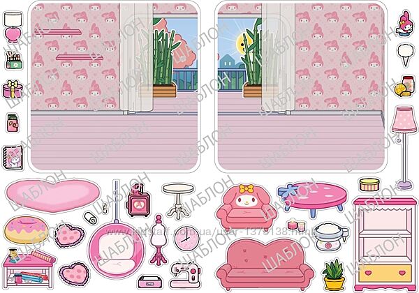 БАГАТО ОКРЕМИХ ДЕТАЛЕЙ - будиночок My melody МелодіТока бока TOCA boca на липучках Електронний шаблон