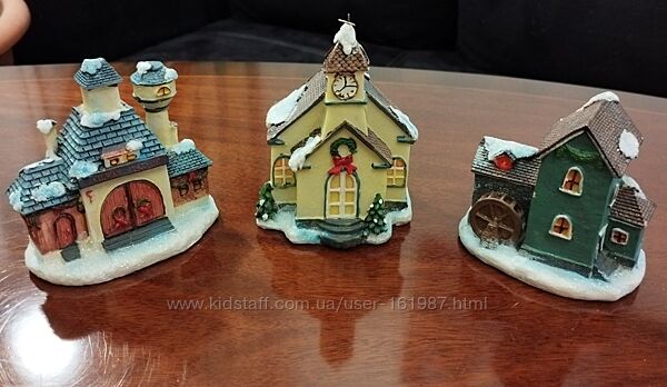 Красивая зимняя композиция "Зимний немецкий городок" 3 здания. Цена-1000грн.Германия. В очень хорошем состоянии. Примерно 80хх.гг. Высота домика 9-10см.