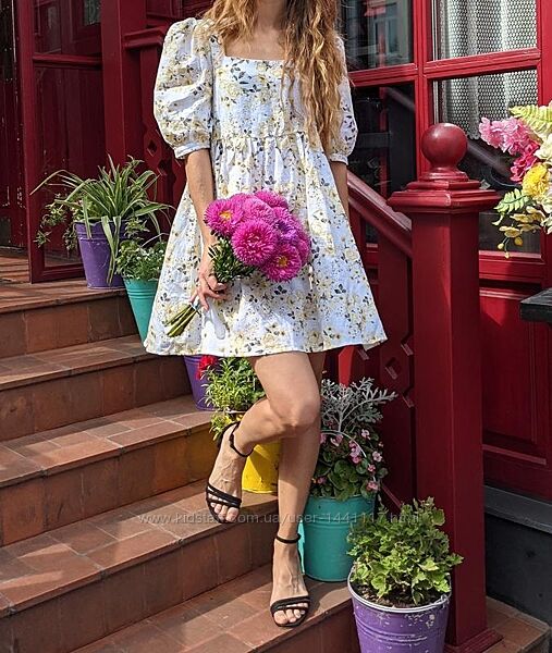Подробное описание: Ніжна коротка сукня в квітковий принт з об´ємними рукавами оверсайз oversiz