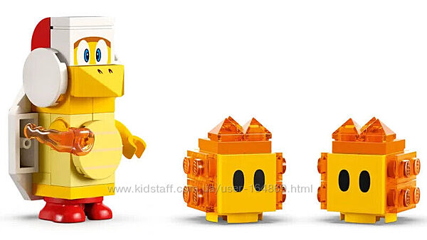 Lego Super Mario Поездка на волне лавы Дополнительный набор 71416Подготовьтесь к катанию на скамье-волне! Прыгайте на лавовый подъемник и продолжайте качаться на раскаленной волне. Только будьте осторожны и не впадите в пламя под вами. И следите за пламенным братом в соседней башне! Сбивайте лавобульки с гребней волн, и побеждайте их и пламенного брата, чтобы собрать больше монет!