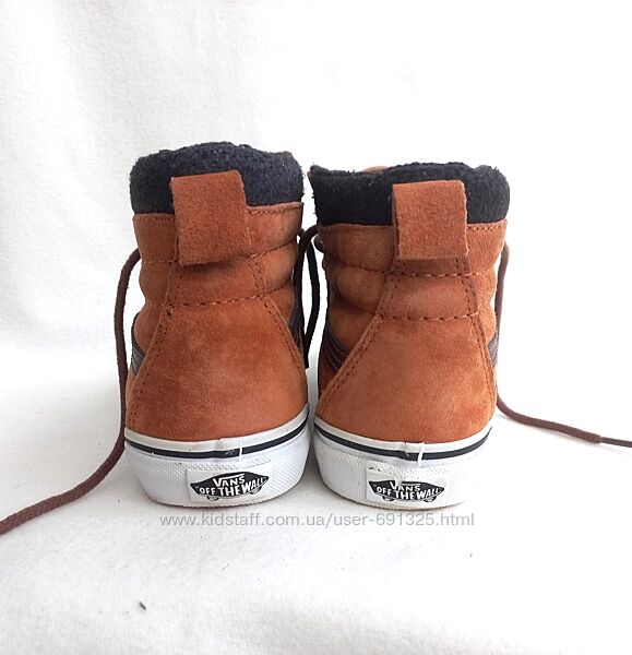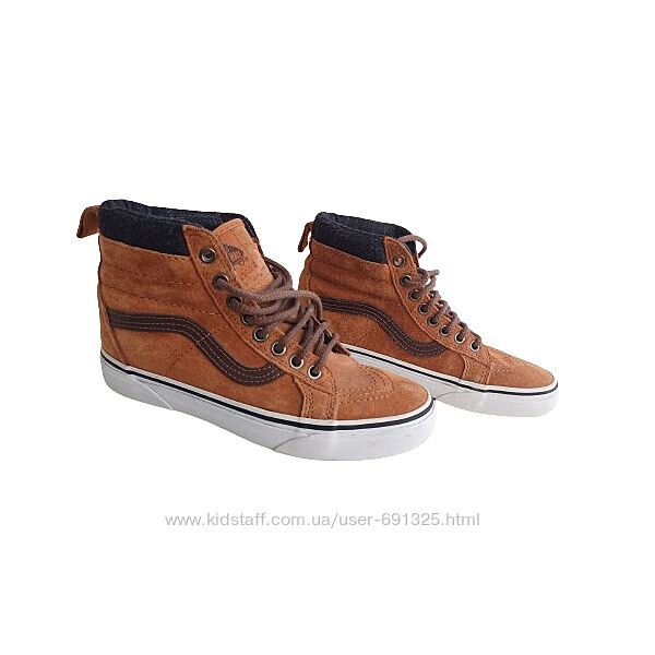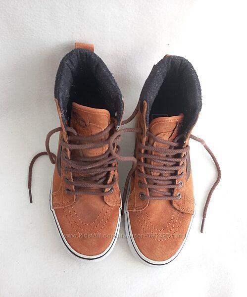 Пропоную руді демісезонні кеди хайтопи з натуральної замшевої шкіри, від Vans. Всередині флісова підкладка. Вживані 1 раз, акуратно, стан ідеальний.Розмір вказаний 3, довжина устілки всередині 23 см, ширина 8 см.