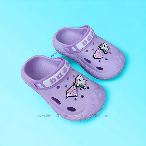 Подробное описание: Дитячі крокс/сабо сірі та бузкові джибітс 4 шт в комплекті