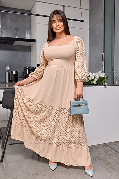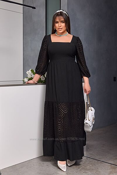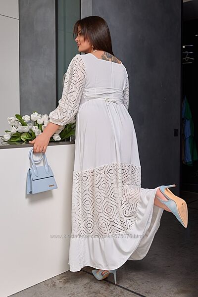 р.48 до 62р. сукня максі, комбінована з прошви та жатки