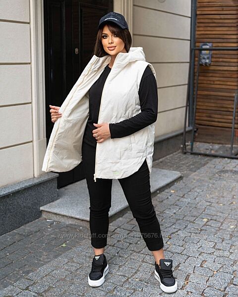 Подробное описание: р.48 до 62р. Жилетка жіноча з кишенями плащівка Емі матова, пайка стьобана
