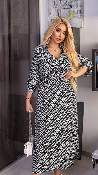 СУКНЯ НА ЗАПАХ довжиною міді.Сукня фіксується поясом, що дає можливість регулювати обʼєм.