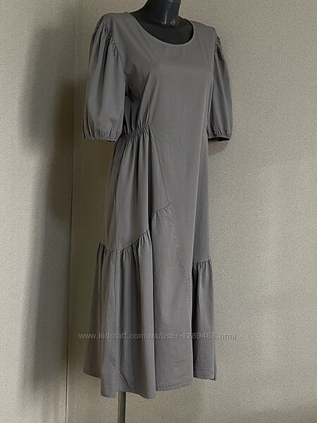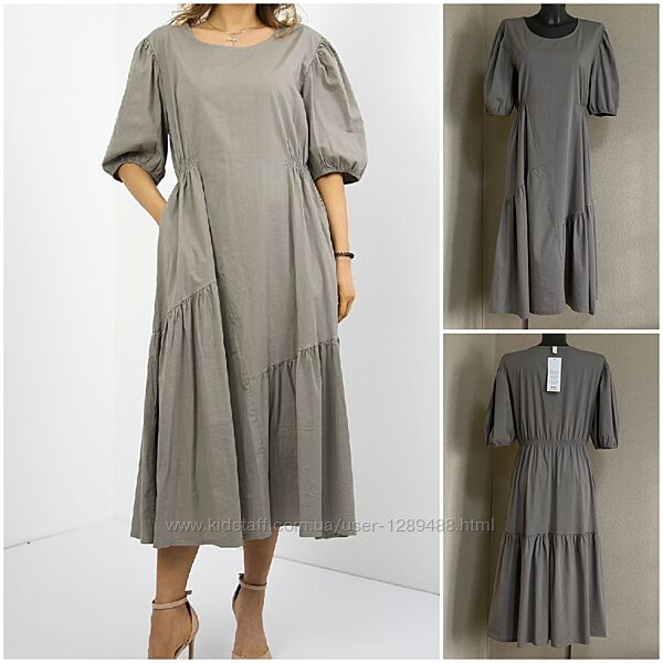 Красивое, комфортное, элегантное легкое платье, ИталияКрасивая, комфортная и практичная модель платья с рукавом-фонарем до локтя и асимметричным воланом по низу.Натуральная, качественная, легкая хлопковая (хлопок-жатка) ткань.