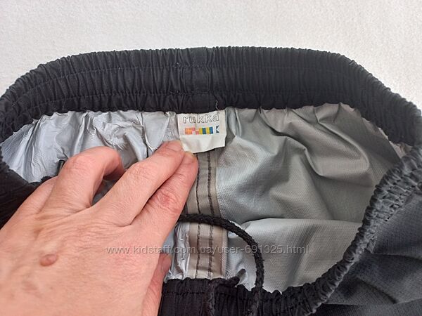 Штани Rukka - довжина з бокового шва 78 см, з внутрішнього шва 52 см, ширина талії 28 см, тягнеться до 38 см, ширина стегон 48 см. Ширина штанини зверху 26 см, внизу 17 см, можна зменшити, є кнопки. Посадка спереду 27 см, ззаду 34 см.