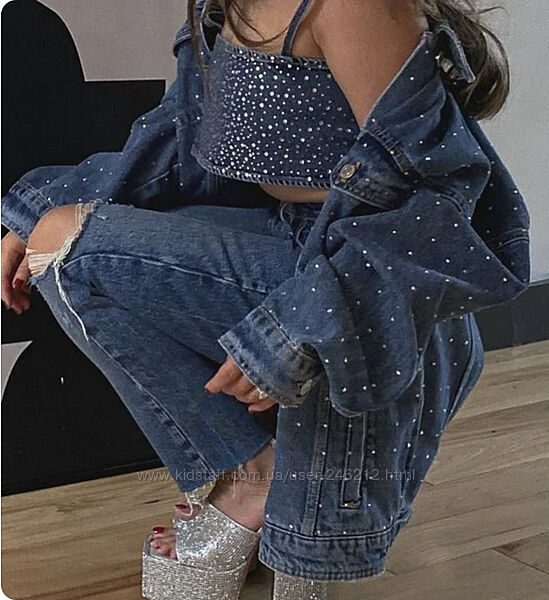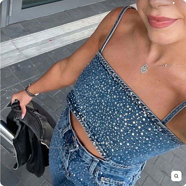 Подробное описание: Джинсовий топ майка зі стразами zara M