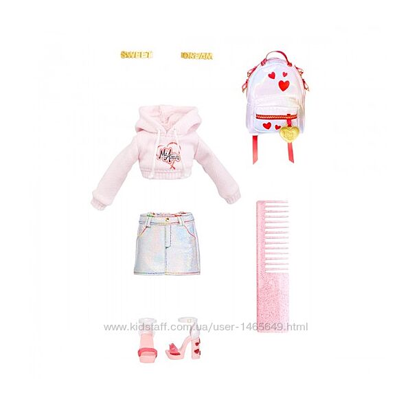 До набору входить: 1 лялька, комплект одягу, взуття, гребінець, аксесуари.
