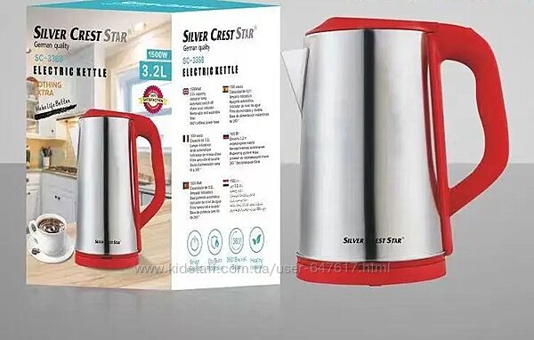 Электрочайник модели Silver CrestSc-3368 изготовлениз качественных материалов. Внешняя поверхность не только стильно смотрится, но