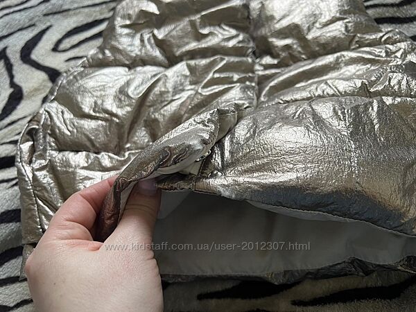 Жилет зара золотиста 2-3 роки 98 см . Маломірить . Всередині є наповнювач .Стан гарний , носили мало . Із нюансів затерся кутик , показано на фото .