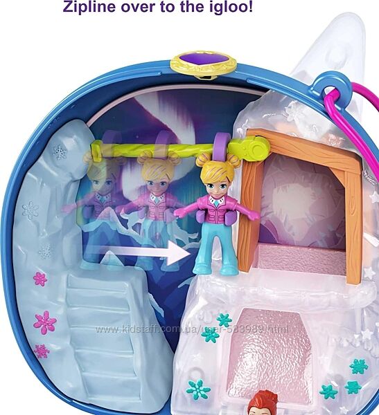 Відкрийте для себе ці круті розваги та розкриття: відкрийте двері іглу, і лялька Поллі або Ліла зможе поміститися та висунути з іншого кінця; Ляльку Поллі або Лілу можна закріпити на мотузці та ковзати до іглу; натисніть на хвіст нарвала, і він підніметься вгору; відкрити айсберг і знайти всередині дитинча нарвала; рухаються два маленьких пінгвіни; а лялька Поллі чи Ліла можуть кататися на собачій упряжці.