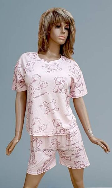 Розмір: М 44-46, L 46-48, XL 48-50, 2XL 50-52, 3XL 52-54Трикотажна піжама складається з футболки та шортів. Шорти середньої посадки, гумка м´яка — ніщо не заважатиме сну.